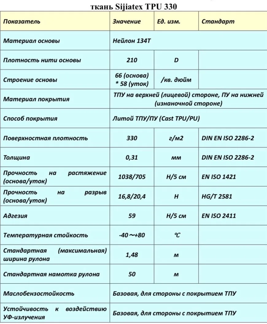 Материал выполнен на нейлоновой основе 134T, имеет TPU-покрытие на лицевой стороне и PU-покрытие на изнаночной. Такой вариант удобен для задач, где важны стабильная структура, рабочая гибкость и понятные технические характеристики.