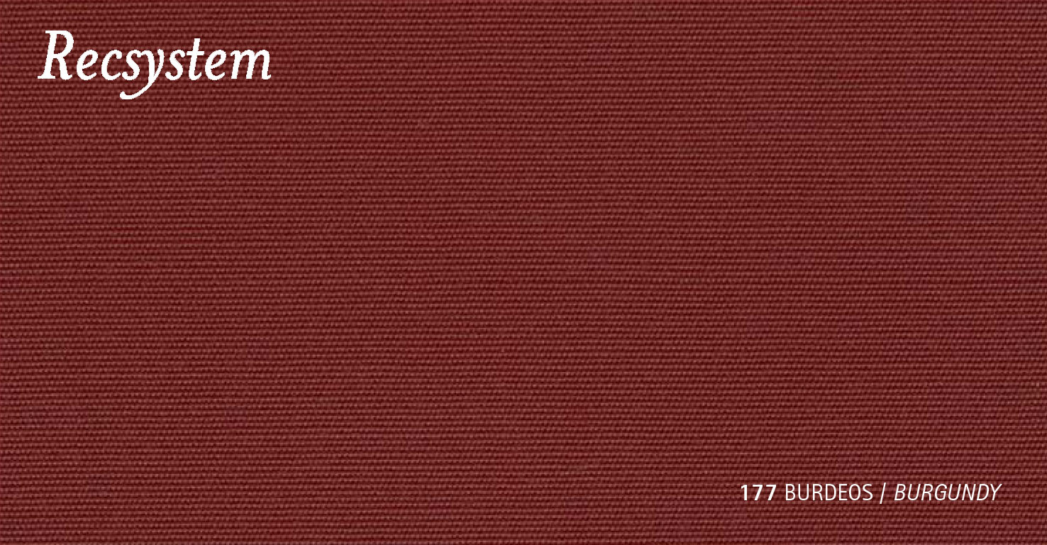 Если требуется бордовая акриловая тентовая ткань с современным внешним видом, хорошей водозащитой, удобством в уходе и качественными техническими характеристиками, Recsystem 177 BURGUNDY 325 г/м² станет сильным выбором для широкого круга задач.
